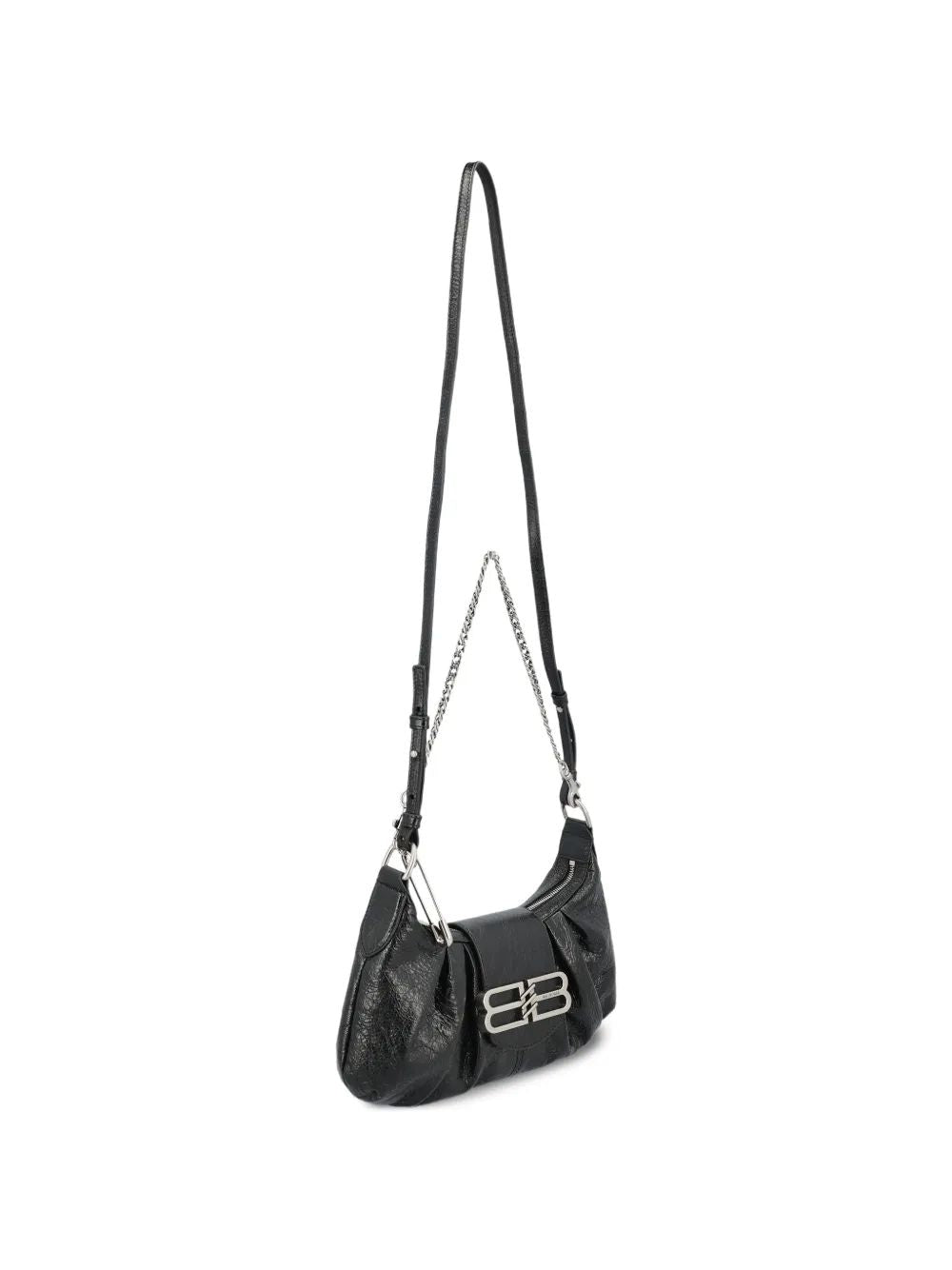 Elevate your accessory collection with the Balenciaga Small Pamela Shoulder Bag in luxurious black leather. This sophisticated piece features the iconic Balenciaga hardware and a sleek, curved silhouette that effortlessly transitions from day to night.