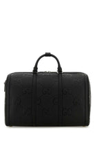 Elevate your travel experience with this luxurious Black Leather Travel Bag from Gucci. Crafted from premium leather and adorned with the iconic GG Jumbo embossed pattern, this sophisticated duffle bag combines timeless elegance with practical functionality.