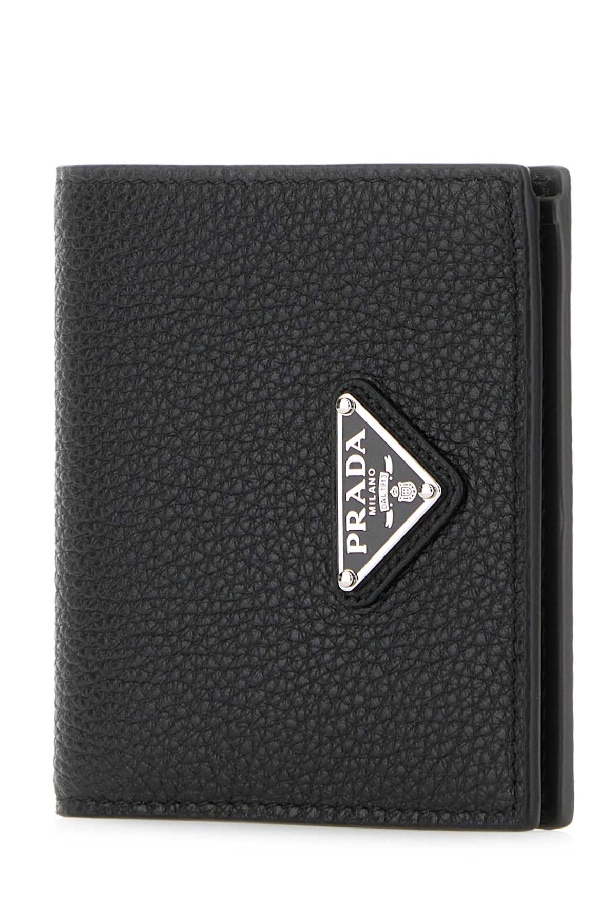 Elevate your everyday essentials with this sophisticated black leather wallet from Prada. Crafted from premium textured leather, this horizontal bifold design features the iconic triangular logo badge, instantly recognizable as a symbol of Italian luxury and craftsmanship.