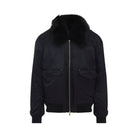 MOOSE KNUCKLES BLACK LUGO GOLD BOMBER. CRAFTED IN NYLON AND RECYCLED POLYESTER FABRIC. POINTED FURRY NECK, FRONT ZIPPED FASTENING, SIDE FLAP POCKETS, LONG SLEEVES, PATCH ZIPPED POCKET ON THE RIGHT SLEEVE, GOLD-TONE METALLIC LOGO ON THE RIGHT SLEEVE, RIBBED CUFFS AND HEM, STRAIGHT HEM.