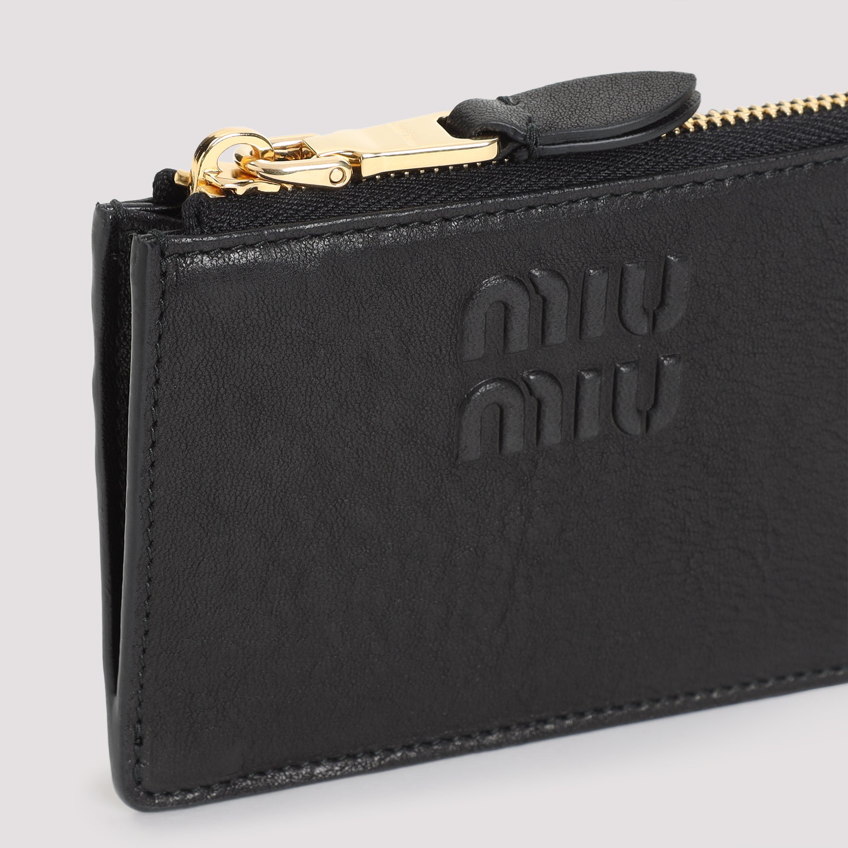 This sleek Miu Miu card holder is crafted from luxurious black nappa leather, offering both sophistication and functionality. The compact design features a convenient zip closure to keep your cards and essentials secure, while the embossed logo adds an unmistakable touch of luxury.