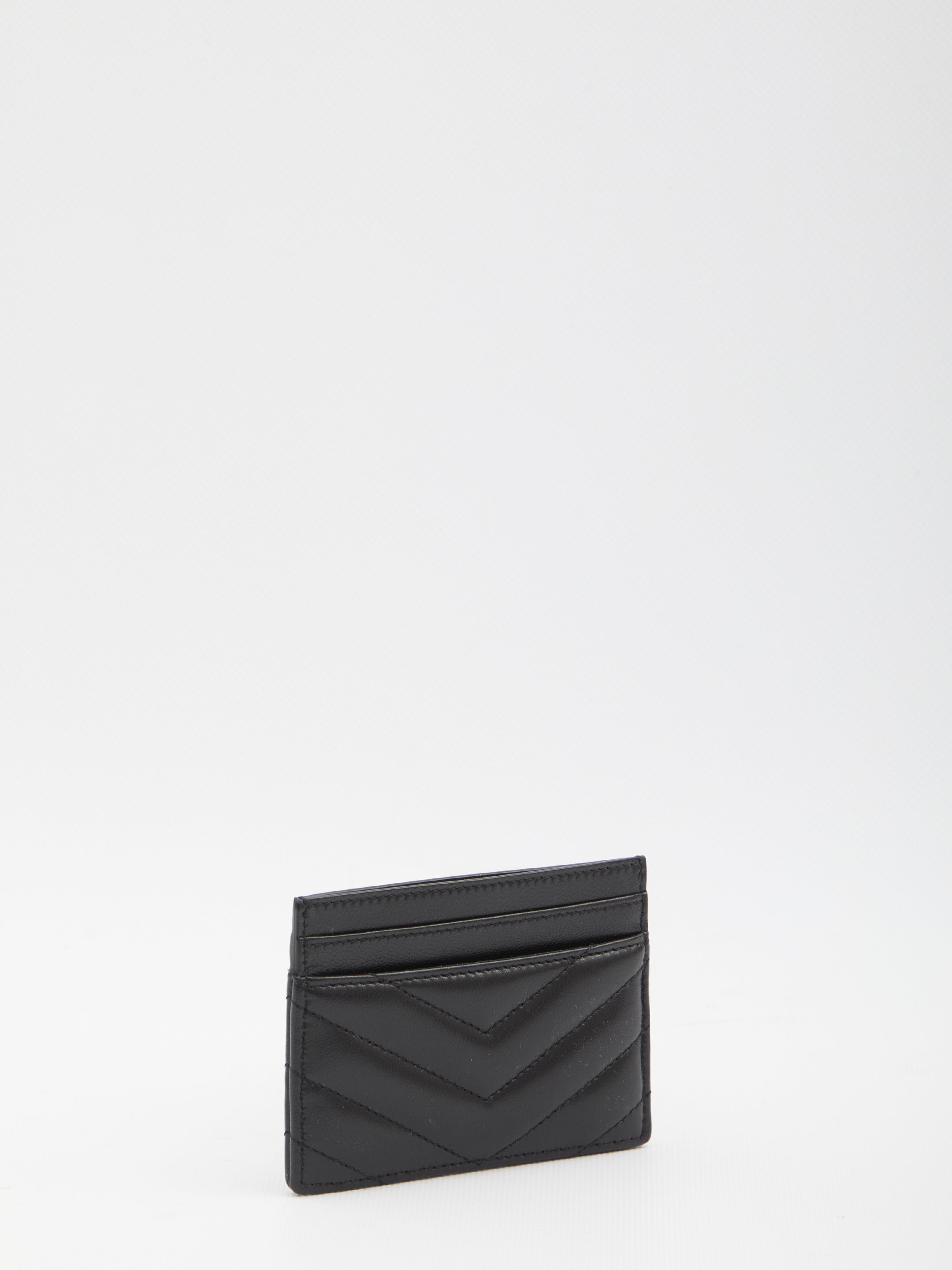 Elevate your everyday essentials with this luxurious Black Nappa Leather Cassandre Card Holder from Saint Laurent. Crafted from supple nappa leather with the iconic quilted chevron pattern, this sleek card holder features the signature YSL Cassandre logo in gleaming gold-tone hardware.