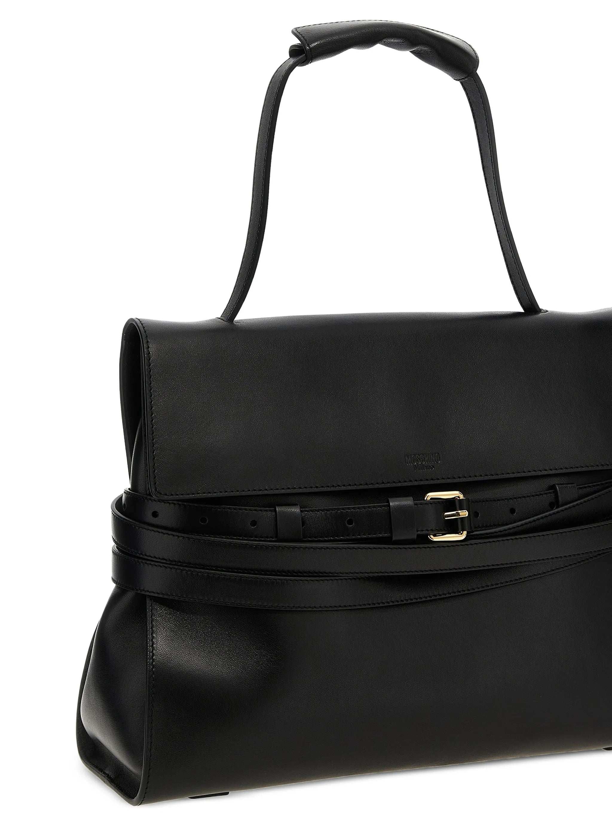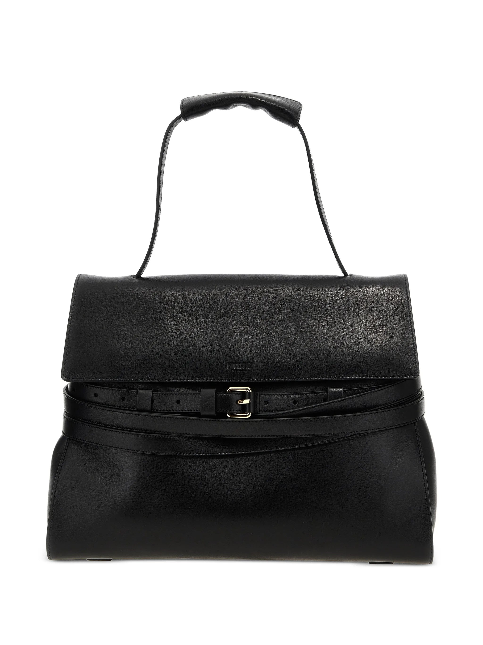 Elevate your everyday style with this sophisticated black nappa leather shoulder bag from MOSCHINO COUTURE. Crafted from luxuriously soft nappa leather, this structured bag features a distinctive belt detail that adds a modern edge to its classic silhouette.