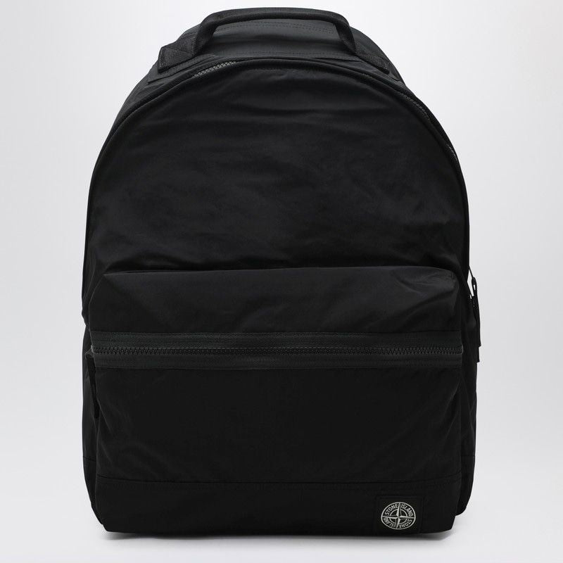 Elevate your everyday carry with this sleek black nylon metal backpack from Stone Island. Crafted with a durable polyurethane coating, this technical backpack features a front gusset pocket with zip closure and the iconic compass logo patch.