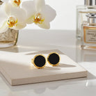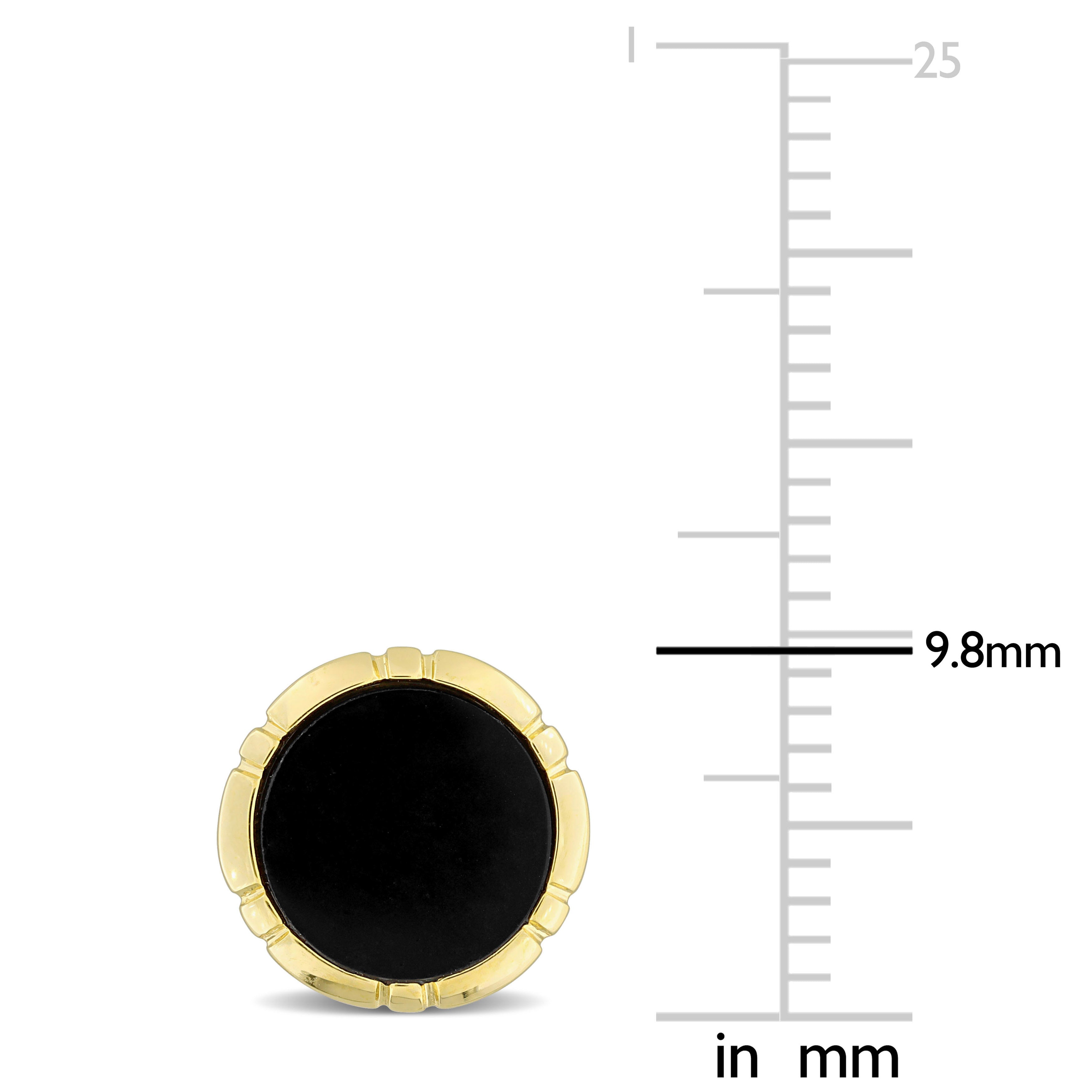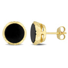These lovely circle halo stud earrings are crafted in 14-karat yellow gold and showcase black onyx stones. These earrings are enhanced with a high polish finish.