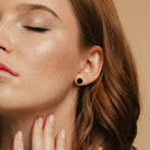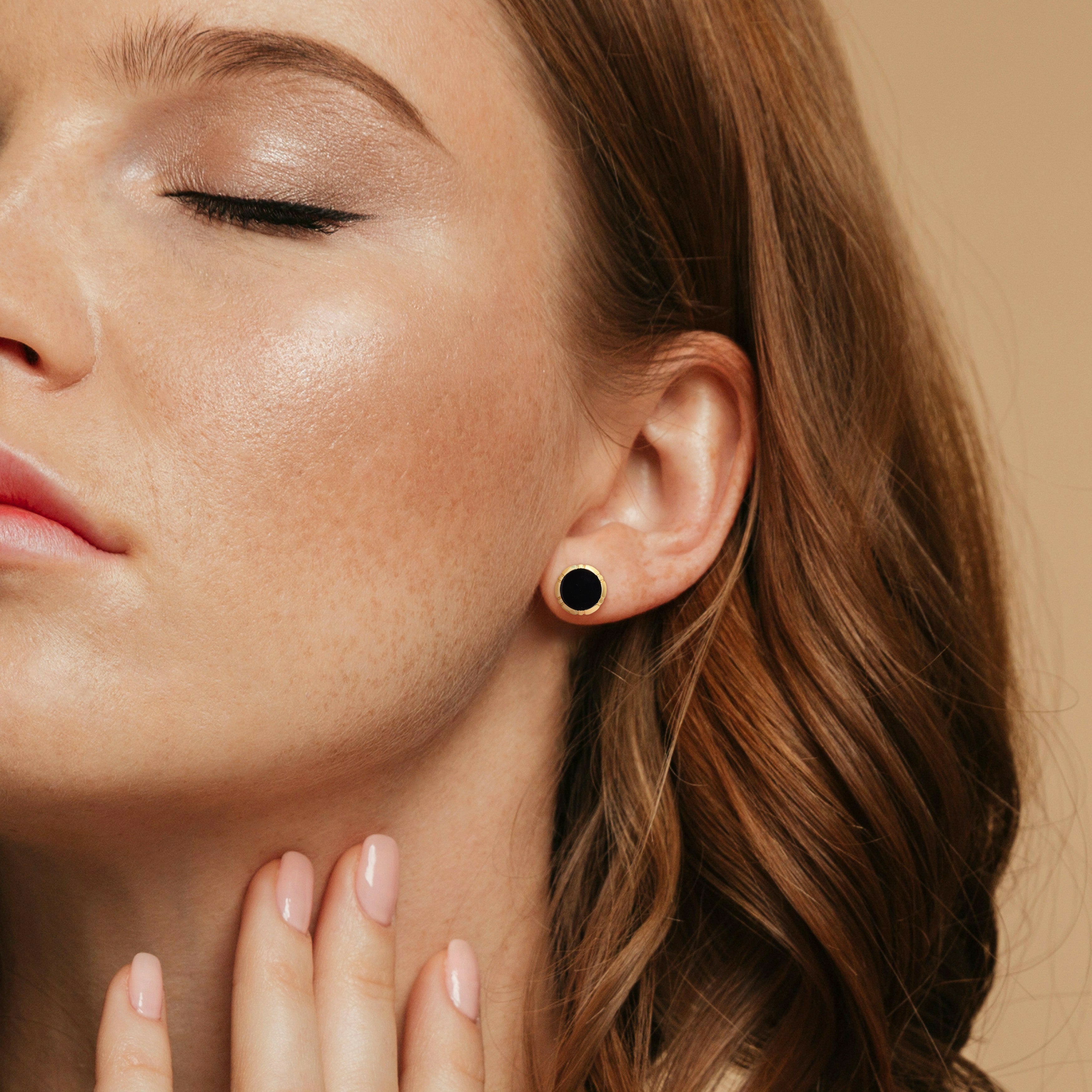 Black Onyx Halo Stud Earrings in 14k Yellow Gold