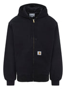 BLACK ORGANIC COTTON MATERIAL ZIP FASTENING QUILTED HOOD LINING KANGAROO POCKETS SQUARE LABEL