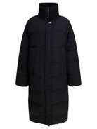 This luxurious black padded polyamide coat from MAX MARA SPORTMAX combines sophisticated style with practical warmth. The long silhouette and quilted construction provide exceptional insulation while maintaining an elegant, streamlined appearance.