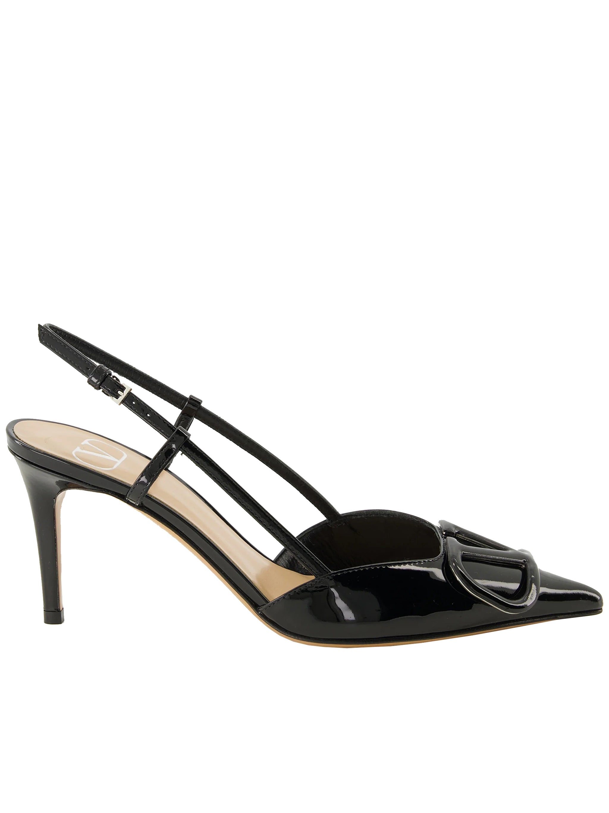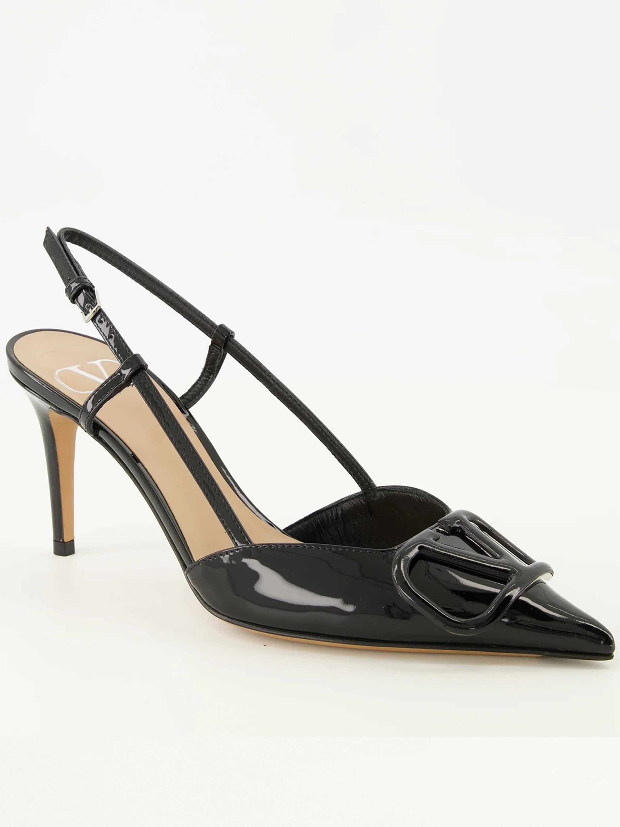 The mid-height heel offers the perfect balance of height and wearability, making these slingbacks ideal for both office elegance and evening sophistication. The timeless black patent finish ensures these Valentino heels will become a versatile staple in your wardrobe.