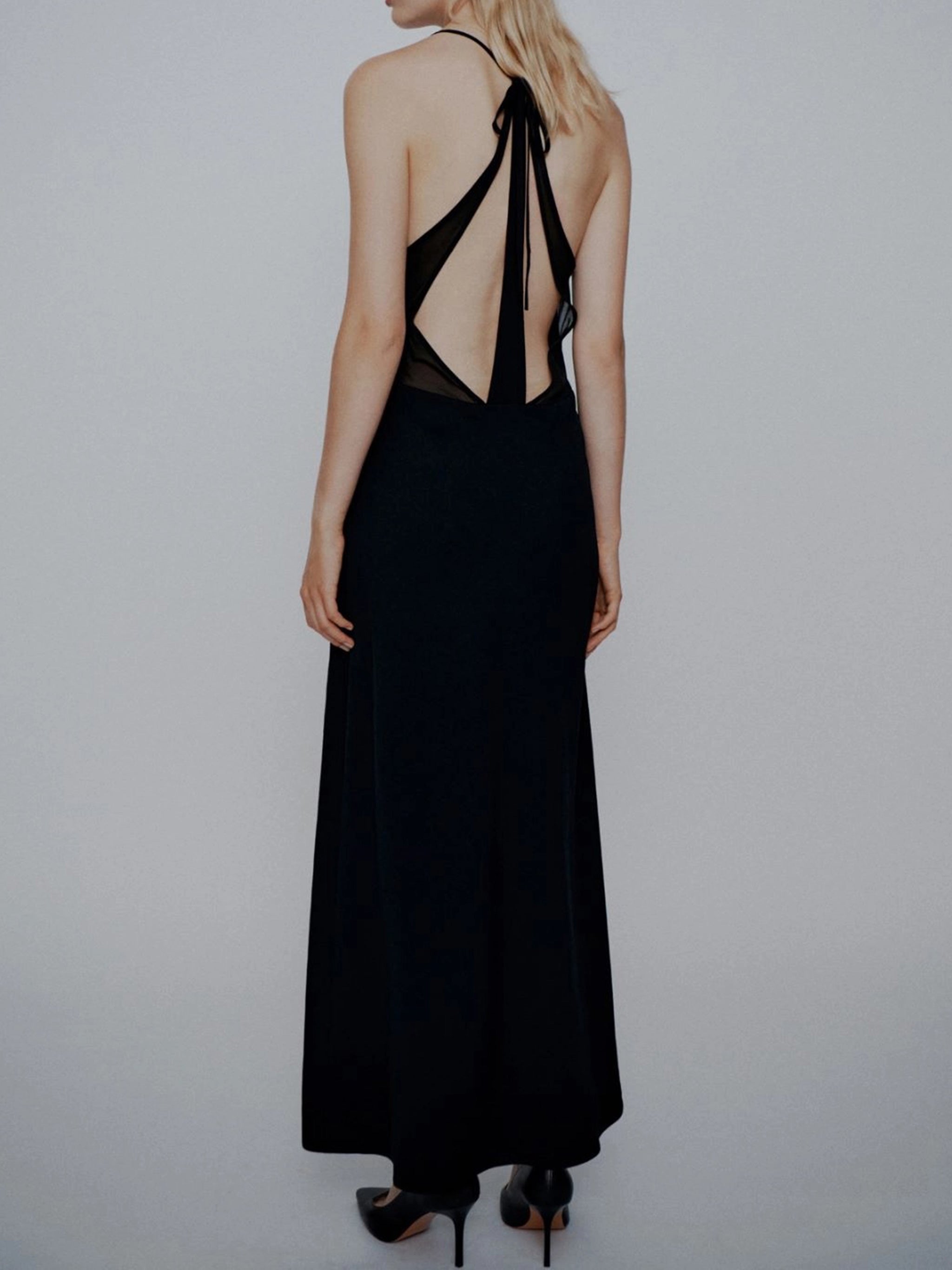 Elevate your evening wardrobe with this stunning black maxi dress from Marella. Featuring a sophisticated halter neckline with elegant tie detailing at the neck, this floor-length silhouette creates a sleek and timeless look.