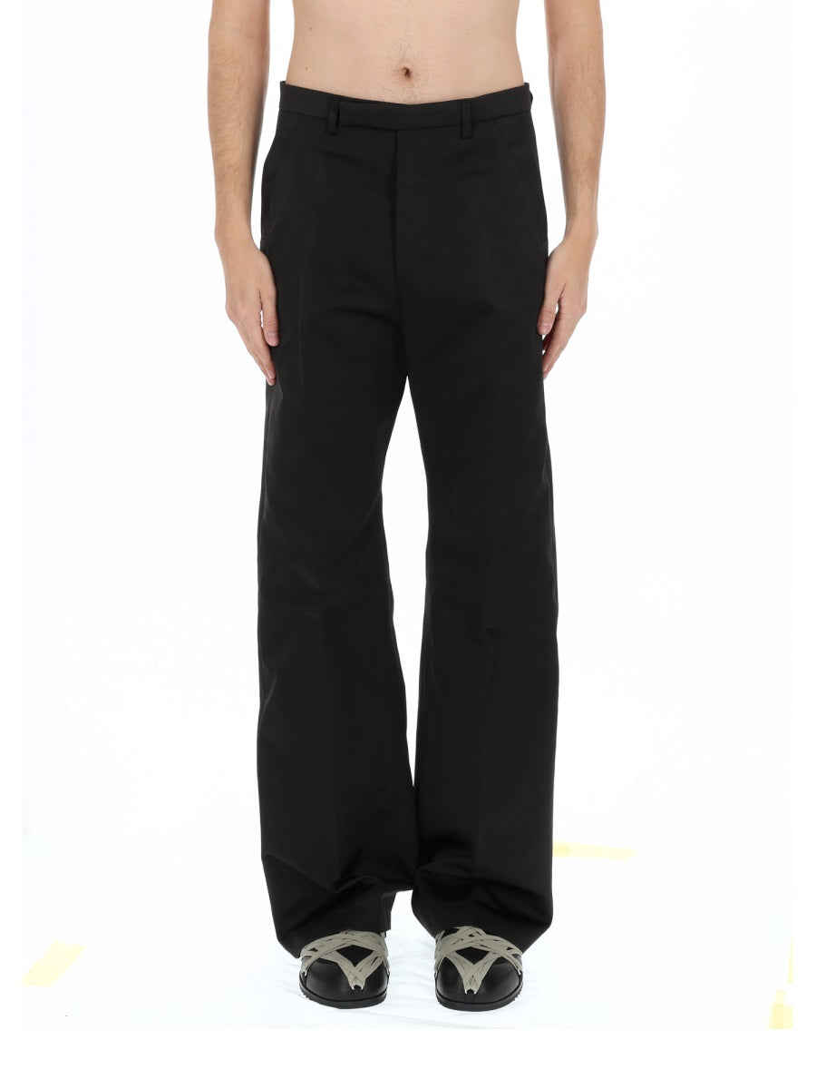 Elevate your everyday wardrobe with these sophisticated black polyester trousers from Rick Owens. Crafted in Italy with meticulous attention to detail, these trousers feature a luxurious cupro lining and distinctive buffalo horn buttons that showcase the brand's commitment to premium materials and avant-garde design.