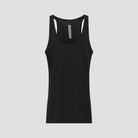 RICK OWENS PONY BLACK COTTON TANK TOP. CRAFTED FROM BLACK COTTON JERSEY, FEATURING AN EXAGGERATED ROUND NECKLINE, A SLEEVELESS CONSTRUCTION, A RACER BACK, THE ICONIC CENTRAL TOPSTITCHING AT THE BACK, AND THE SIGNATURE ROUNDED HEM.