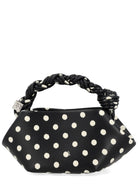 Make a statement with this distinctive black recycled leather handbag from Ganni. Featuring a playful polka dot pattern and unique gathered silhouette, this eco-conscious accessory combines sustainable style with contemporary design.