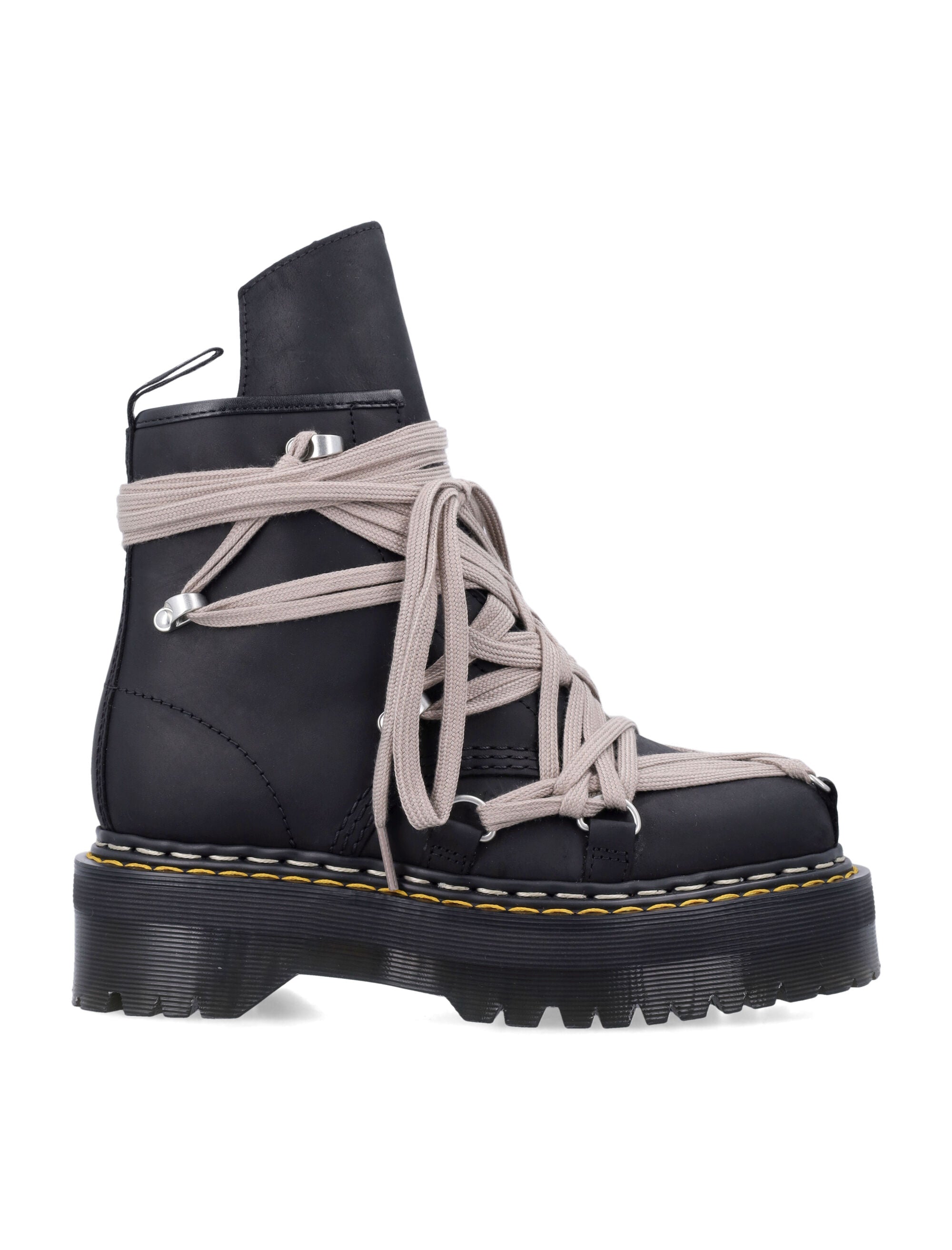 BORN FROM THE COLLABORATION BETWEEN RICK OWENS AND DR. MARTENS, THE 1460 QUAD SOLE MEGALACE® BOOTS REINTERPRET THE CLASSIC SILHOUETTE WITH AN AVANT-GARDE TWIST.