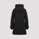 CANADA GOOSE BLACK SHELBURNE PARKA JACKET. BLACK ARCTIC TECH FABRIC, ATTACHED DOWN-FILLED HOOD, LONG SLEEVES, EXTERIOR CUFFS WITH ADJUSTABLE SNAP FASTENING. DUCK DOWN FILL, 2 EXTERIOR AND 2 INTERIOR POCKETS. BACK VENTS WITH SNAP BUTTON FASTENING. LOGO DETAILS.