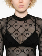 MOONOGRAM MESH FLOCK LS HIGHNECK TOP