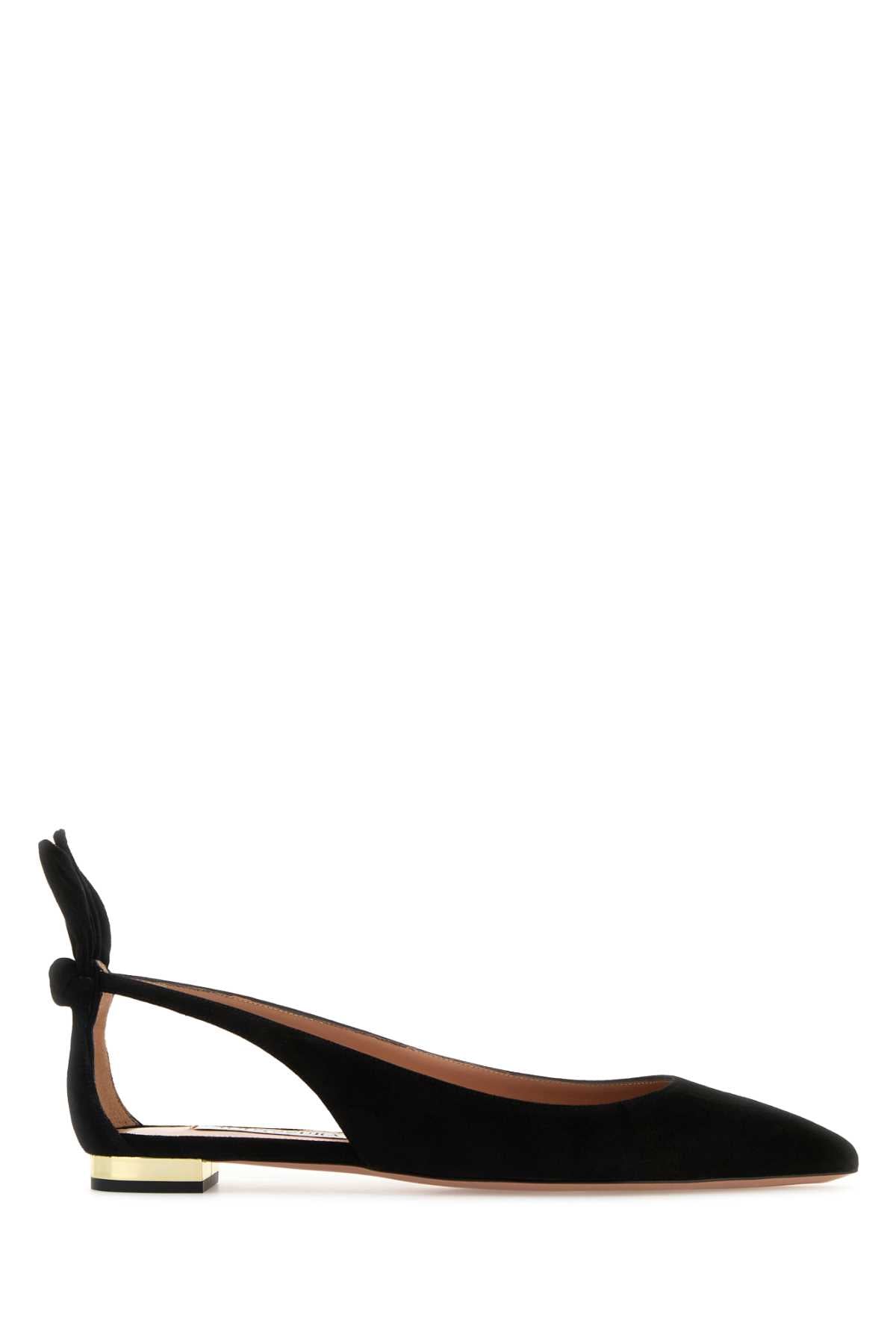 BLACK SUEDE BOW TIE BALLET BALLERINAS