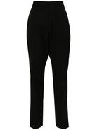 Perfect for the office or elevated casual occasions, these versatile trousers can be styled with a crisp blouse for meetings or paired with a silk camisole for after-work events. The timeless black color and impeccable tailoring make these trousers an essential investment piece for any discerning woman's closet.