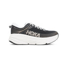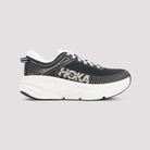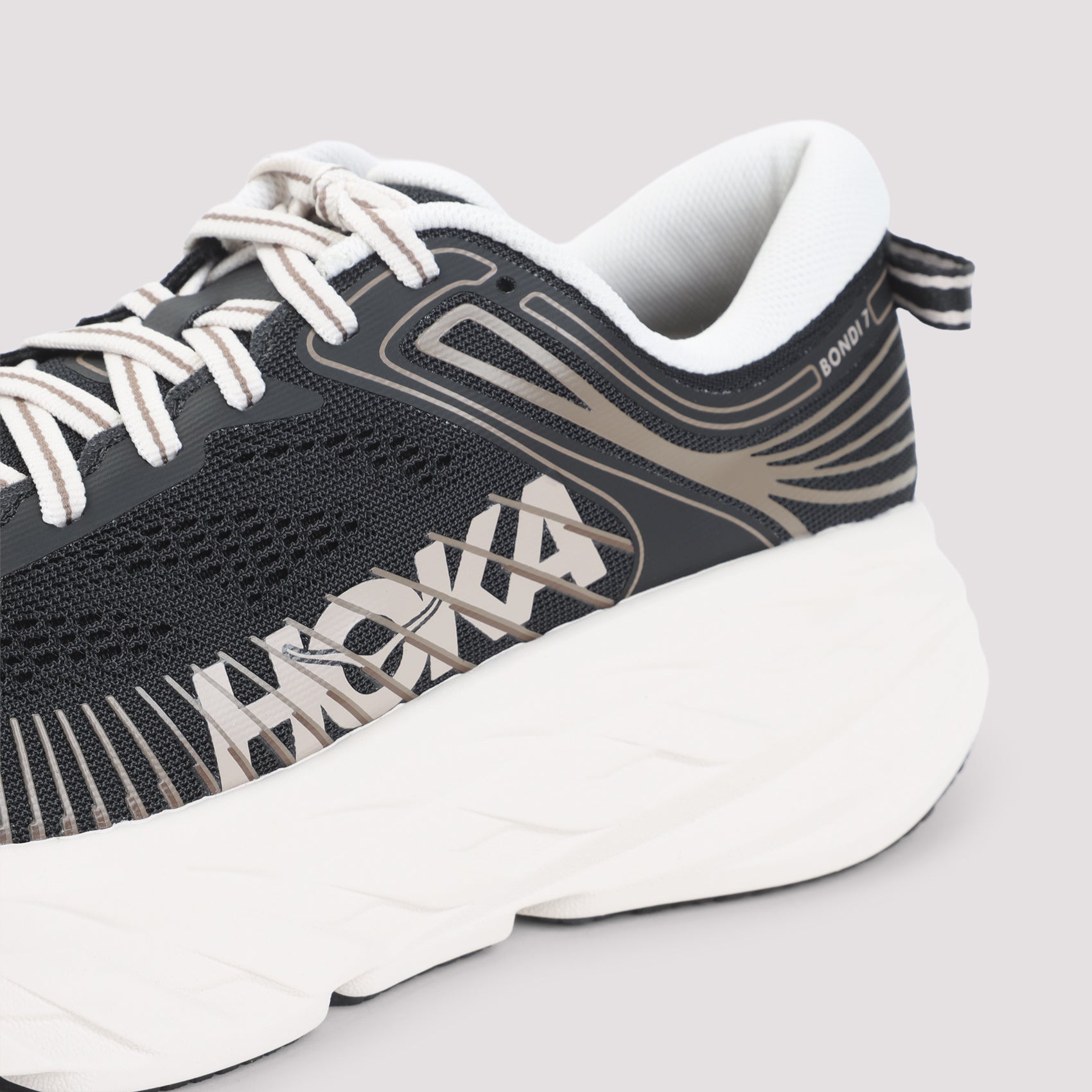 HOKA BLACK TEXTILE W BONDI 7 SNEAKERS. BLACK TEXTILE SNEAKERS, ROUND TOE, TOP ROSE AND WHITE LACE-UP FASTENING, SIDE ROSE LETTERING LOGO, ROSE STRIPES AND DETAILS ON THE UPPER, WHITE RUBBER SOLE.