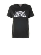 BLACK T-SHIRT WITH WHITE PRINT.