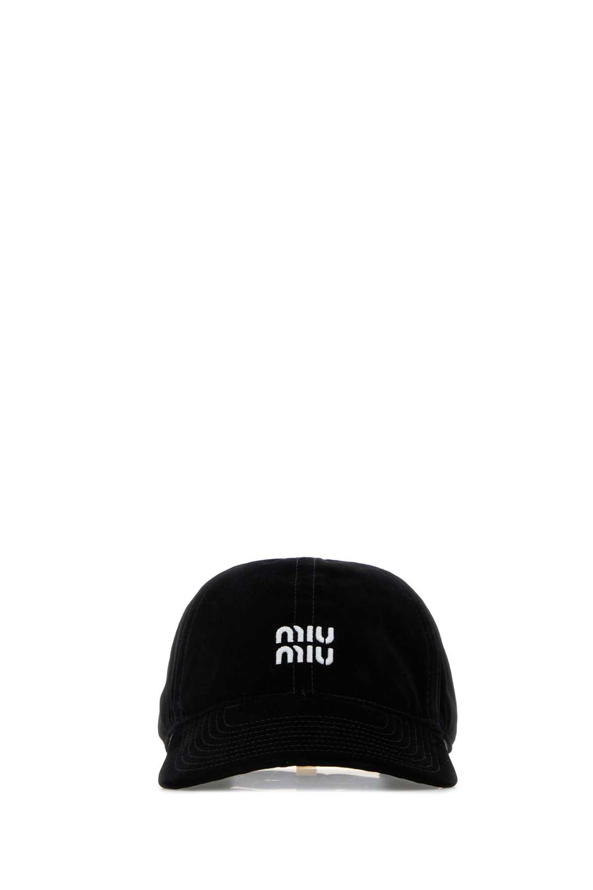 Elevate your everyday style with this luxurious Black Velvet Baseball Cap from Miu Miu. Crafted from sumptuous velvet fabric, this cap features the iconic Miu Miu logo embroidered on the front, adding a touch of high-fashion sophistication to a classic silhouette.