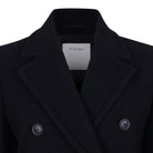 Crafted from premium virgin wool, this coat offers exceptional warmth and luxurious comfort while maintaining a sleek, structured appearance. The versatile black hue and clean lines make it the perfect layering piece for both professional settings and everyday wear.