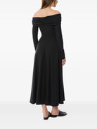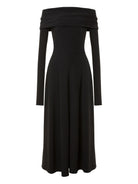 Elevate your evening wardrobe with this stunning black viscose midi dress from Alberta Ferretti. The sophisticated off-the-shoulder neckline beautifully frames the décolletage, while long sleeves provide elegant coverage and a refined silhouette.
