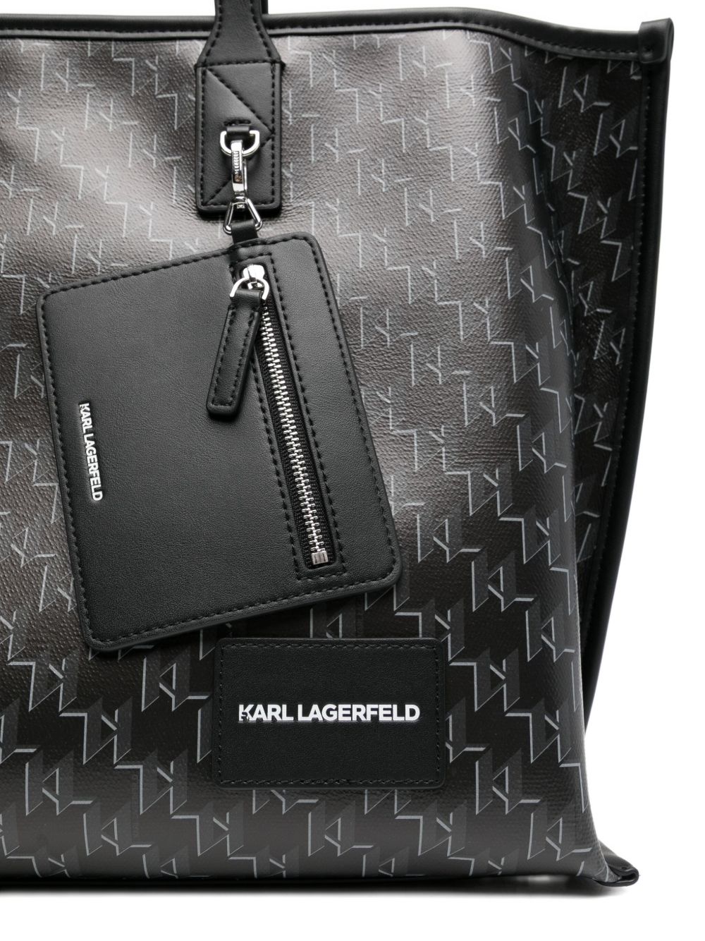 Elevate your everyday style with this sophisticated Black Voyage Tote from Karl Lagerfeld. This spacious and versatile tote features a sleek black exterior complemented by an elegant gray monogram lining that adds a touch of luxury to your daily essentials.