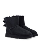 Step into cozy luxury with the UGG Mini Bailey Bow II boots in classic black suede. These ankle-height beauties feature the signature satin bow detail at the back, creating an effortlessly chic silhouette that's both playful and sophisticated.
