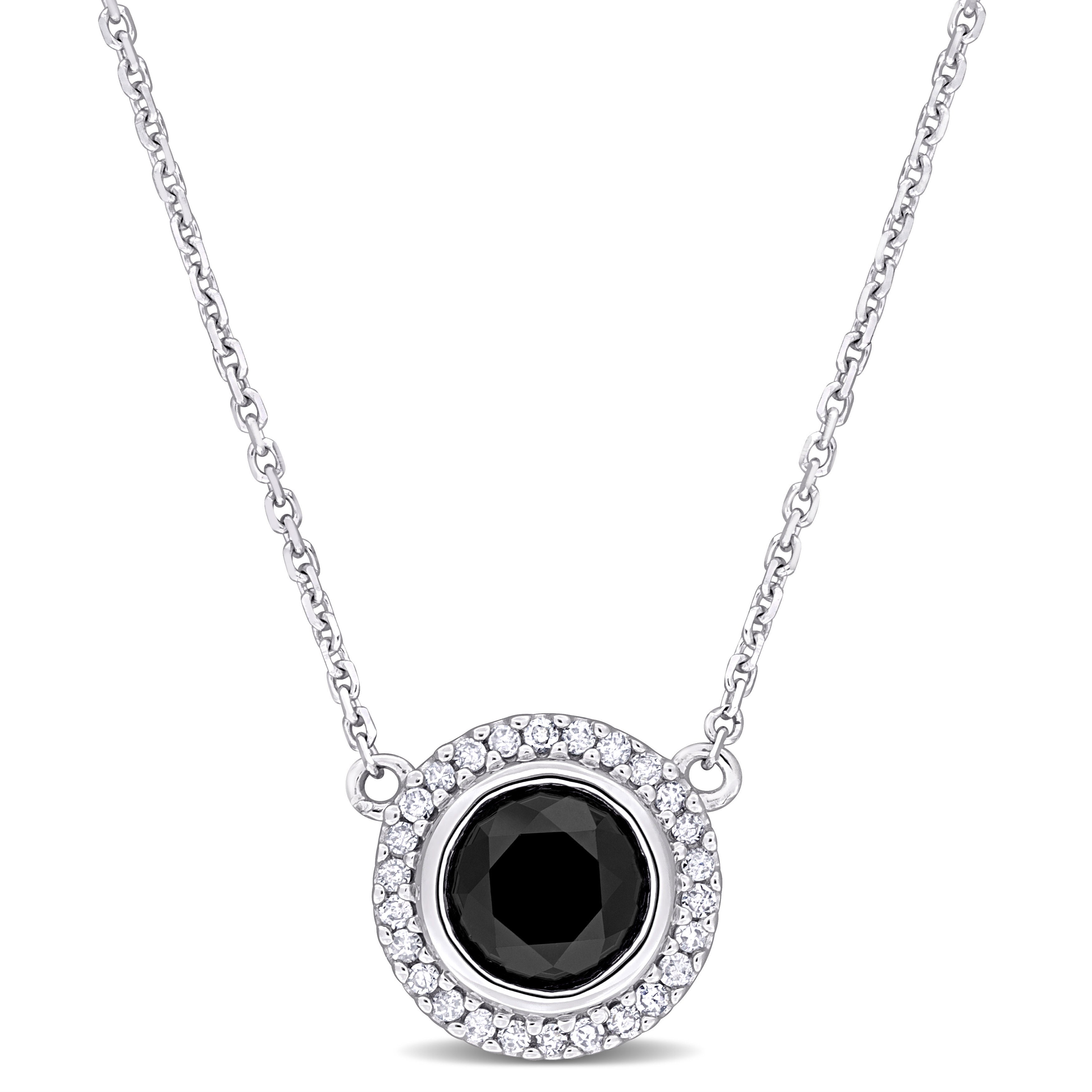 Black & White Diamond Halo Pendant Necklace in 14k White Gold