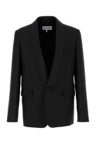 Elevate your wardrobe with this sophisticated BLACK WOOL BLEND BLAZER from LOEWE. This timeless piece features a classic silhouette crafted from premium wool blend fabric that offers both comfort and structure.