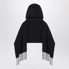 Elevate your outerwear collection with this luxurious Black Wool Hooded Cape by DESTIN. Crafted from a sumptuous blend of wool and cashmere, this sophisticated cape features a cozy hood and elegant fringed edges that add movement and texture.
