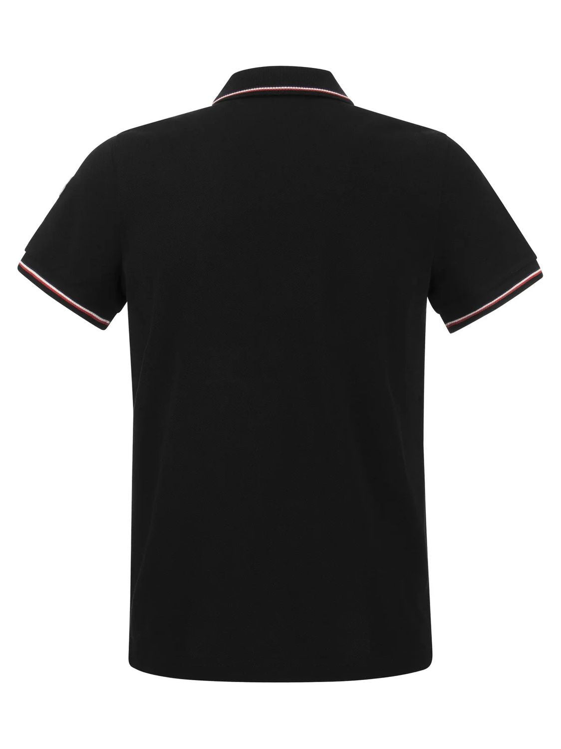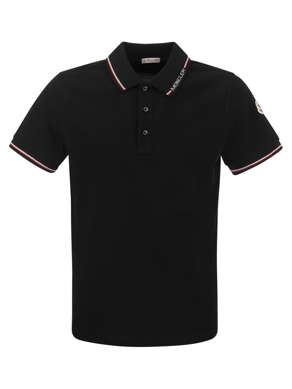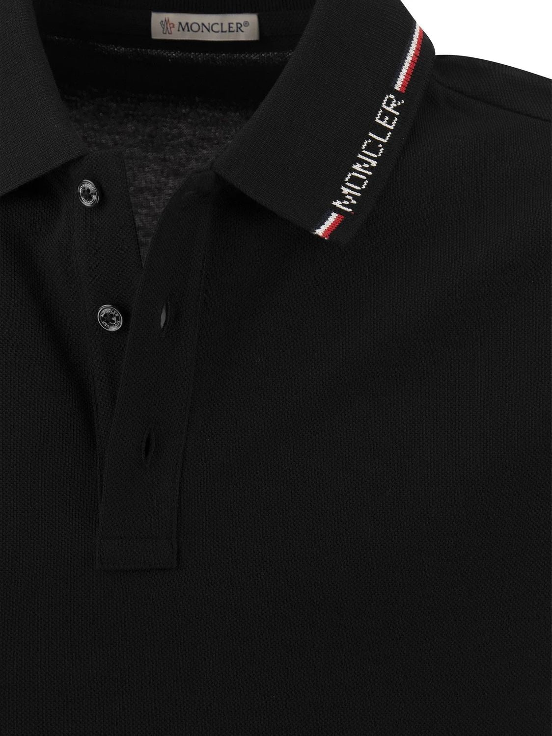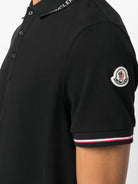 Elevate your casual wardrobe with this sophisticated Black Wool Short Sleeve Polo from Moncler. Crafted from premium wool, this refined polo features a classic three-button placket and signature Moncler branding on the collar, with elegant contrasting trim details on the collar and sleeves.