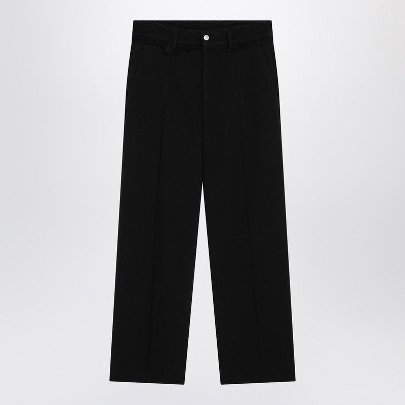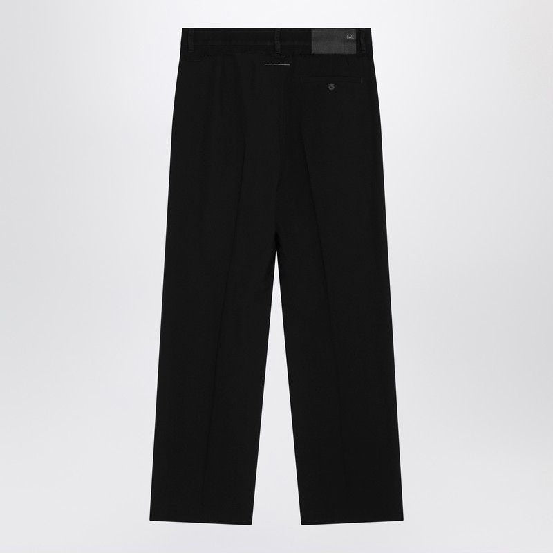 Elevate your wardrobe with these sophisticated black wool-blend trousers from MM6 Maison Margiela. Featuring a modern jeans-style waistband with belt loops and a classic front zip and button closure, these trousers seamlessly blend casual and refined aesthetics.