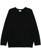 BLACK WOOL-CASHMERE BLEND RIBBED KNIT CREW NECK LONG SLEEVES STRAIGHT HEM