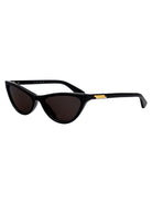 Elevate your everyday look with these sophisticated Bottega Veneta cat-eye sunglasses in sleek black with grey lenses.
