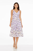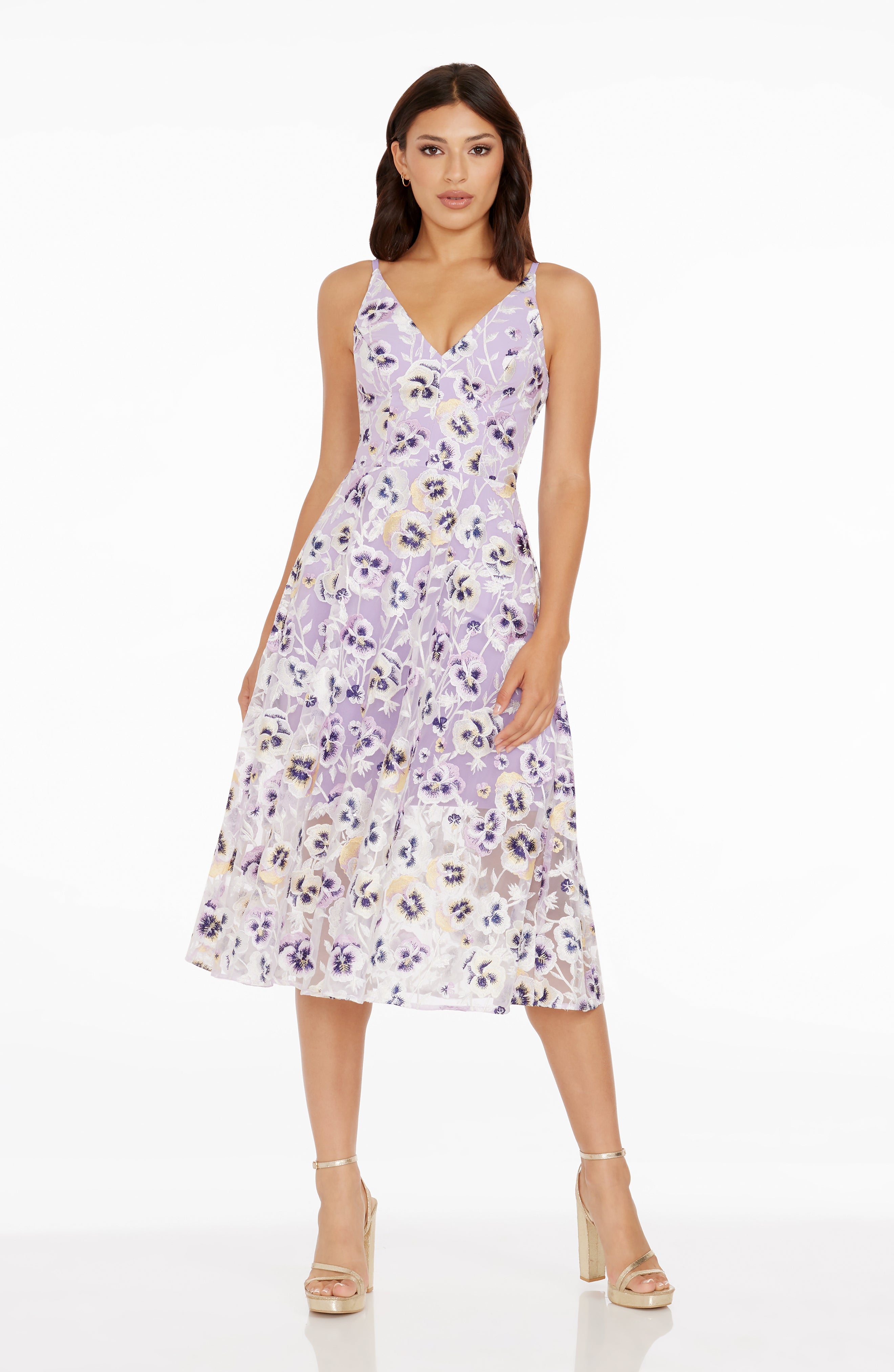 The Blair Dress features a sleeveless design, a V-neckline, and a fit and flare silhouette that falls to a flattering midi length.