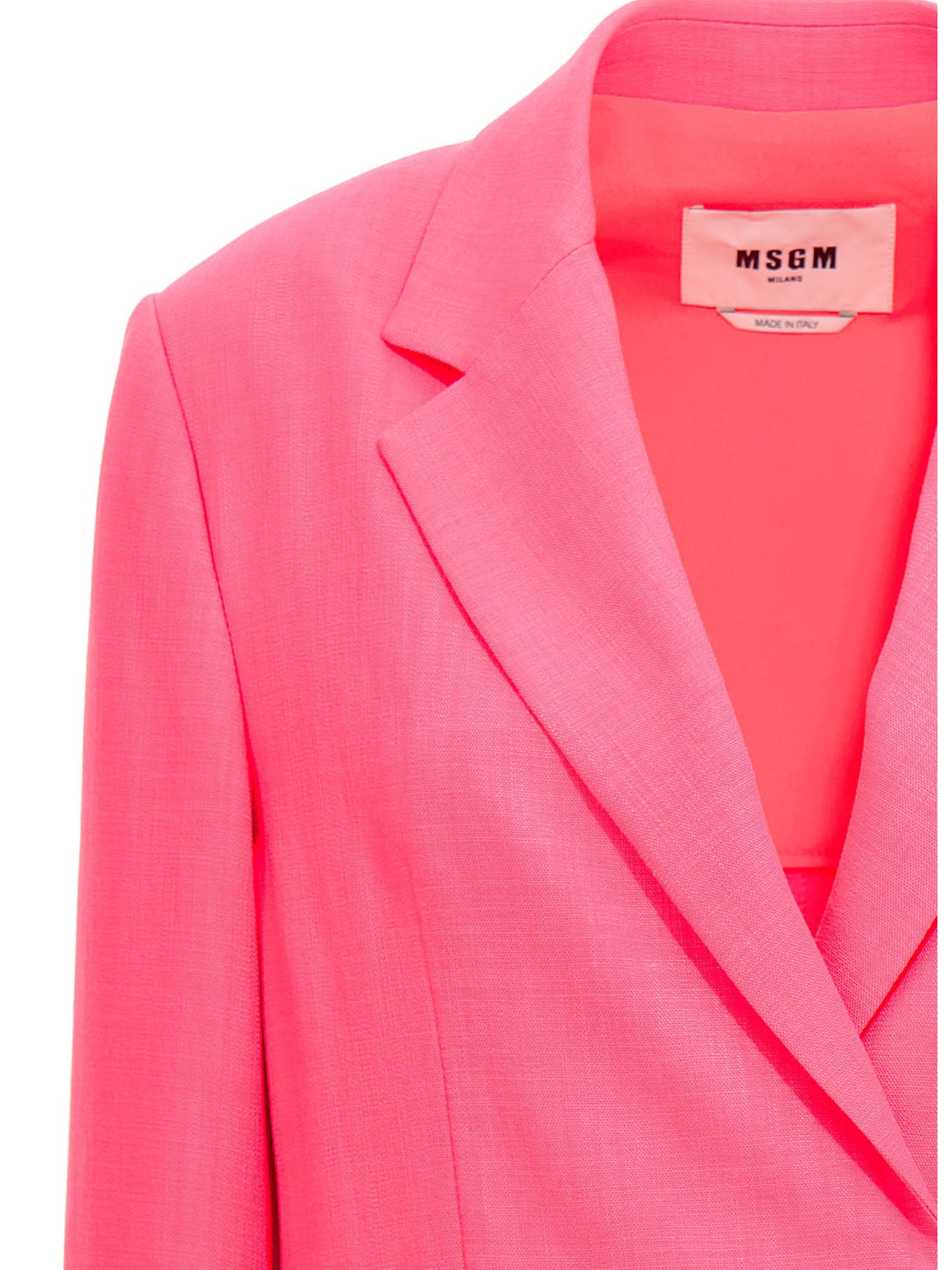 Make a bold statement with this vibrant wrap blazer from MSGM. Crafted in a luxurious viscose blend, this eye-catching pink blazer features a sophisticated wrap closure with button and tie belt detail, creating a flattering silhouette that cinches at the waist.