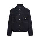 CARHARTT WIP BLUE COTTON BELMAR JACKET. PURE BLUE COTTON JACKET, POINTED COLLAR, FRONT BUTTONED FASTENING, CHEST PATCH POCKET, CHEST PATCH LOGO, CHEST FLAP BUTTONED POCKET, LONG SLEEVES, BUTTONED CUFFS, STRAIGHT HEM.