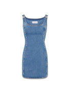 Elevate your casual wardrobe with this stunning blue cotton dress from Marine Serre. Crafted from 100% premium cotton and made in Italia, this sleeveless mini dress features a flattering scoop neckline and adjustable buckle straps for a customized fit.