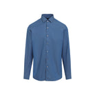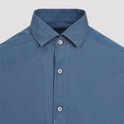 ZEGNA BLUE COTTON SHIRT. CRAFTED FROM BLUE COTTON DENIM, POINTED COLLAR, FRONT BUTTON FASTENING, LONG SLEEVES WITH BUTTONED CUFFS, BACK YOKE, ROUND HEM.