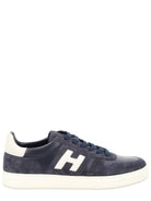 Elevate your everyday style with these sophisticated blue leather sneakers from Hogan. Crafted from premium navy leather and suede, these low-top sneakers feature a classic lace-up design and contrasting cream-colored soles for a refined, contemporary look.