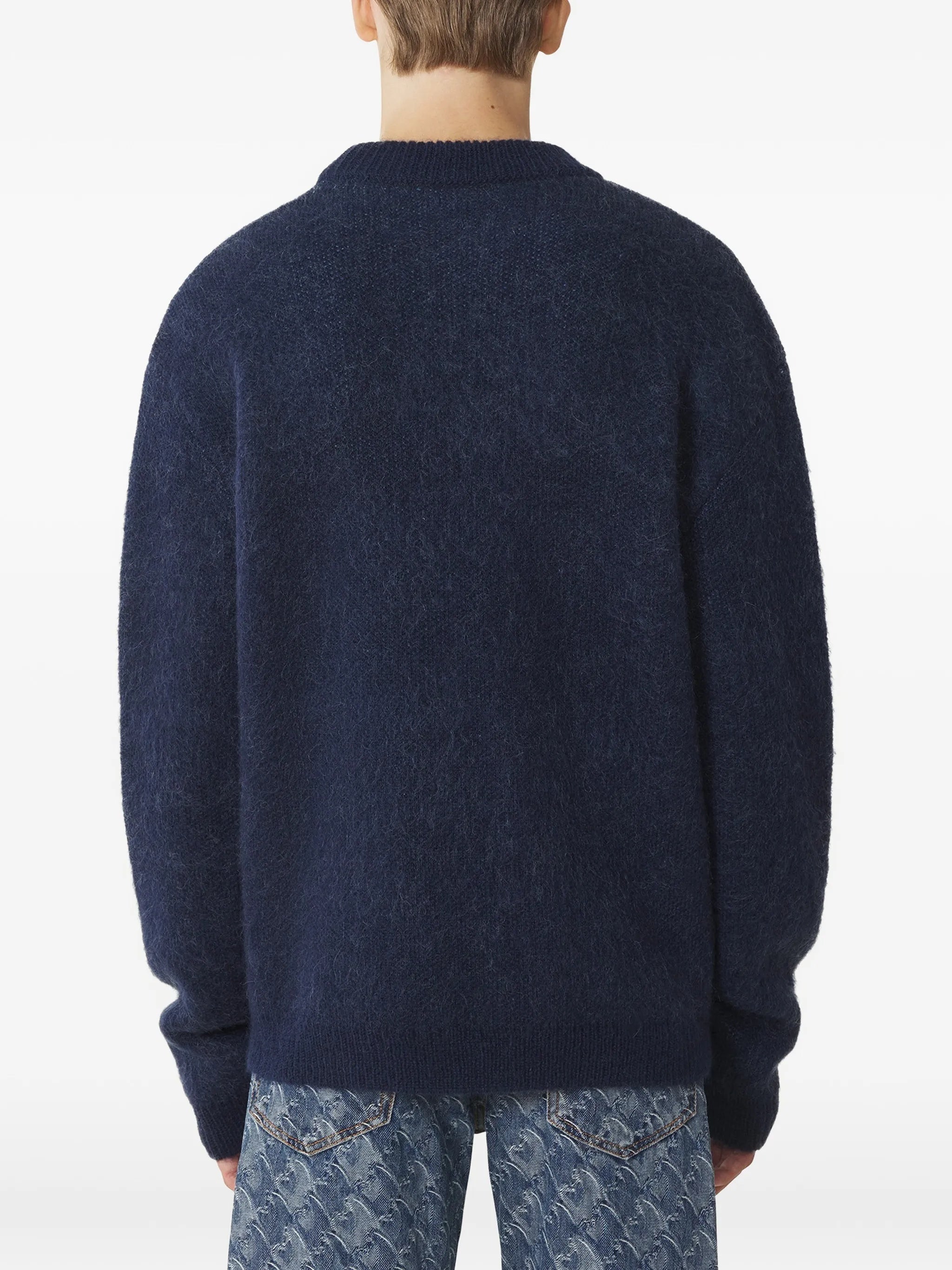 BLUE MOHAIR HORSE JACQUARD SWEATER