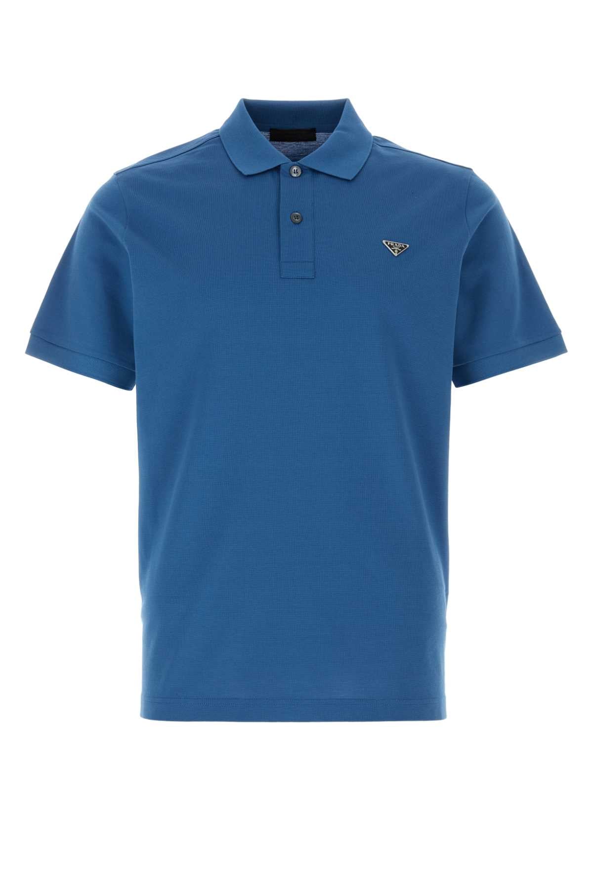 This Prada Blue Piqué Polo Shirt is a sophisticated essential for the modern gentleman's wardrobe. Crafted from premium piqué jersey fabric, this classic polo features a traditional collar, short sleeves, and a refined button placket. The rich blue hue adds a touch of elegance to any casual or smart-casual ensemble. Perfect for weekend outings, office casual days, or relaxed evening plans, this versatile piece effortlessly transitions from day to night. The subtle Prada logo adds an understated luxury touch to this timeless wardrobe staple.