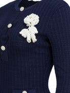 Elevate your wardrobe with this stunning navy blue knitted dress from Self-Portrait. Crafted from luxurious polyester, this sophisticated mini dress features an elegant ribbed knit texture that flatters the silhouette while providing comfortable stretch.