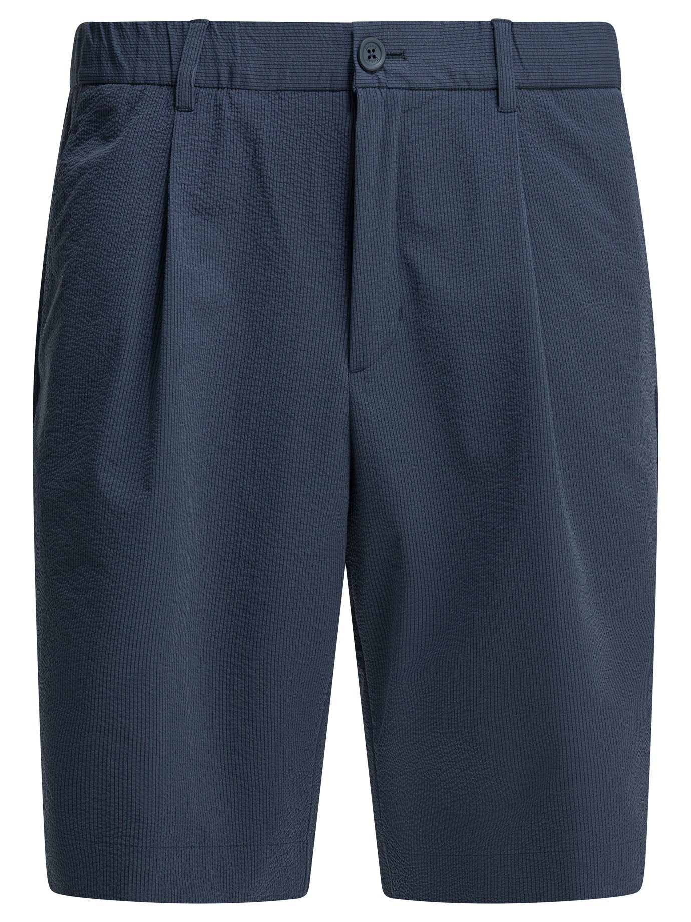 Elevate your warm-weather wardrobe with these sophisticated blue polyester shorts from Herno. Crafted with a textured fabric and featuring a regular fit with a mid-rise waist, these shorts offer both comfort and refined style.