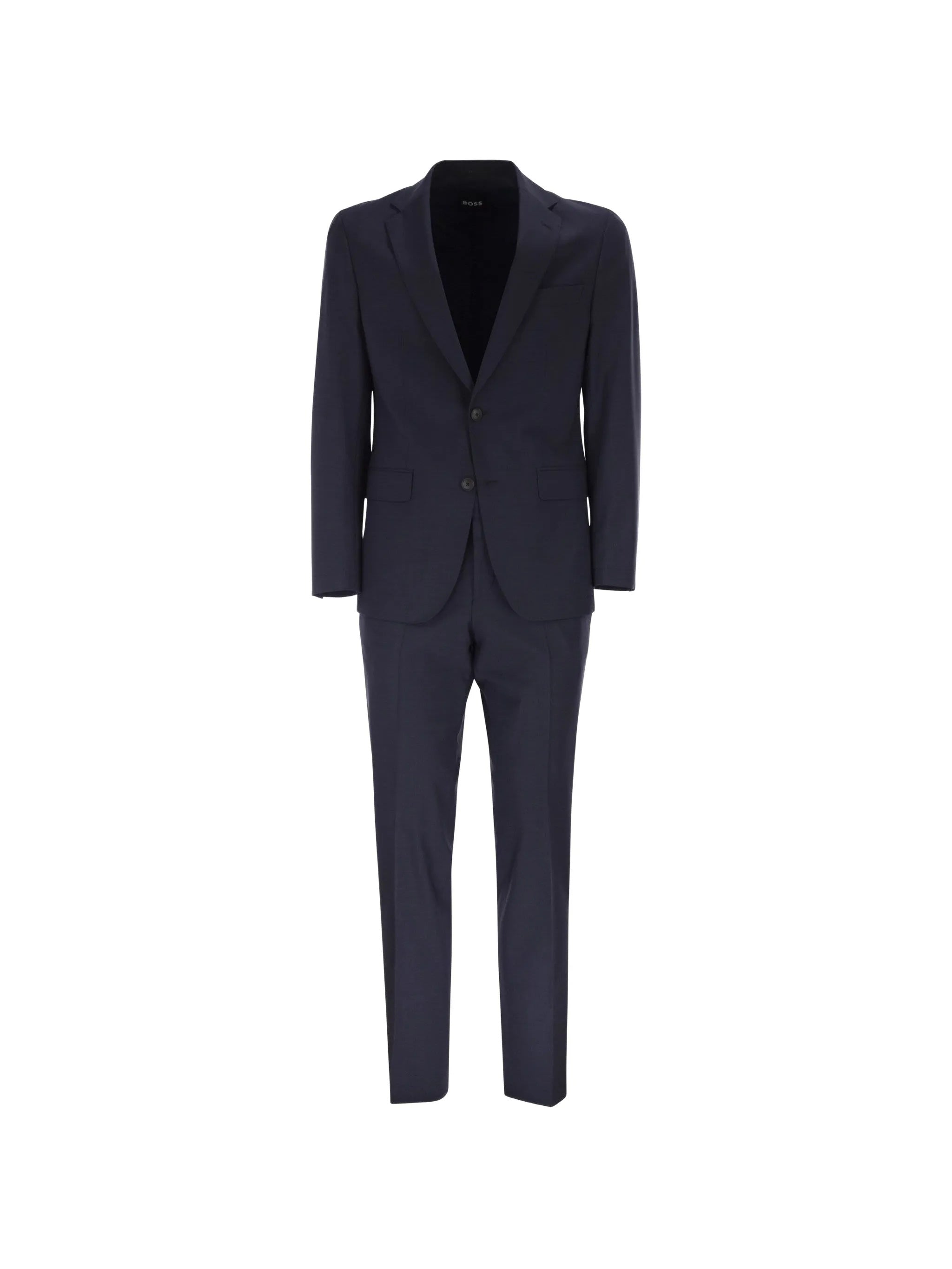 Elevate your professional wardrobe with this sophisticated trouser suit from HUGO BOSS. Crafted from a premium blend of recycled polyester and wool, this navy blue two-piece suit offers both style and sustainability.