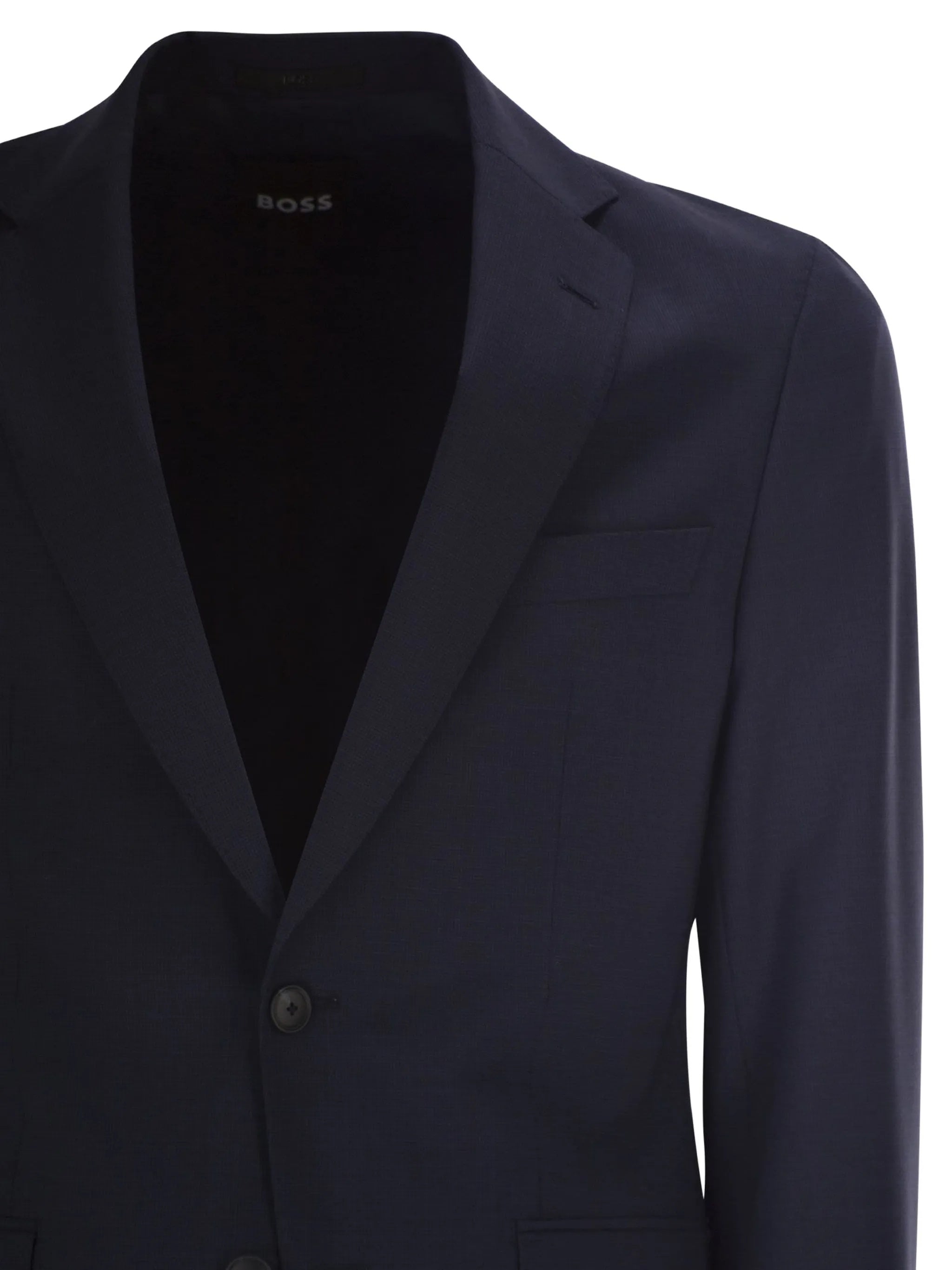 The eco-conscious fabric composition (52% recycled polyester, 43% wool, 5% elastane) ensures comfort and durability while maintaining HUGO BOSS's signature refined aesthetic.