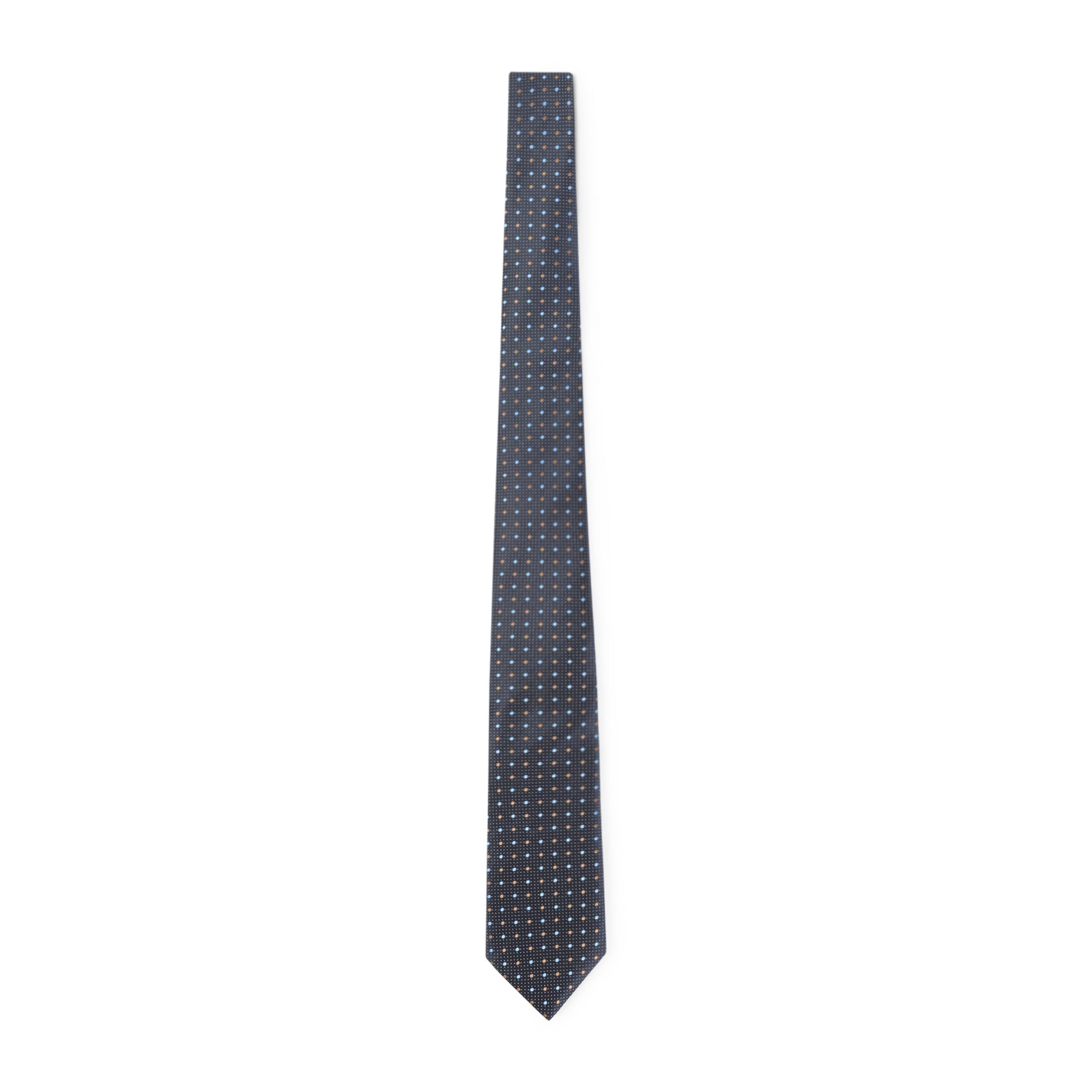 GIORGIO ARMANI SILK TIE. CRAFTED IN BLUE SILK WITH A JACQUARD POIS PATTERN ALLOVER. LOGO LABEL ON INNER SIDE.
