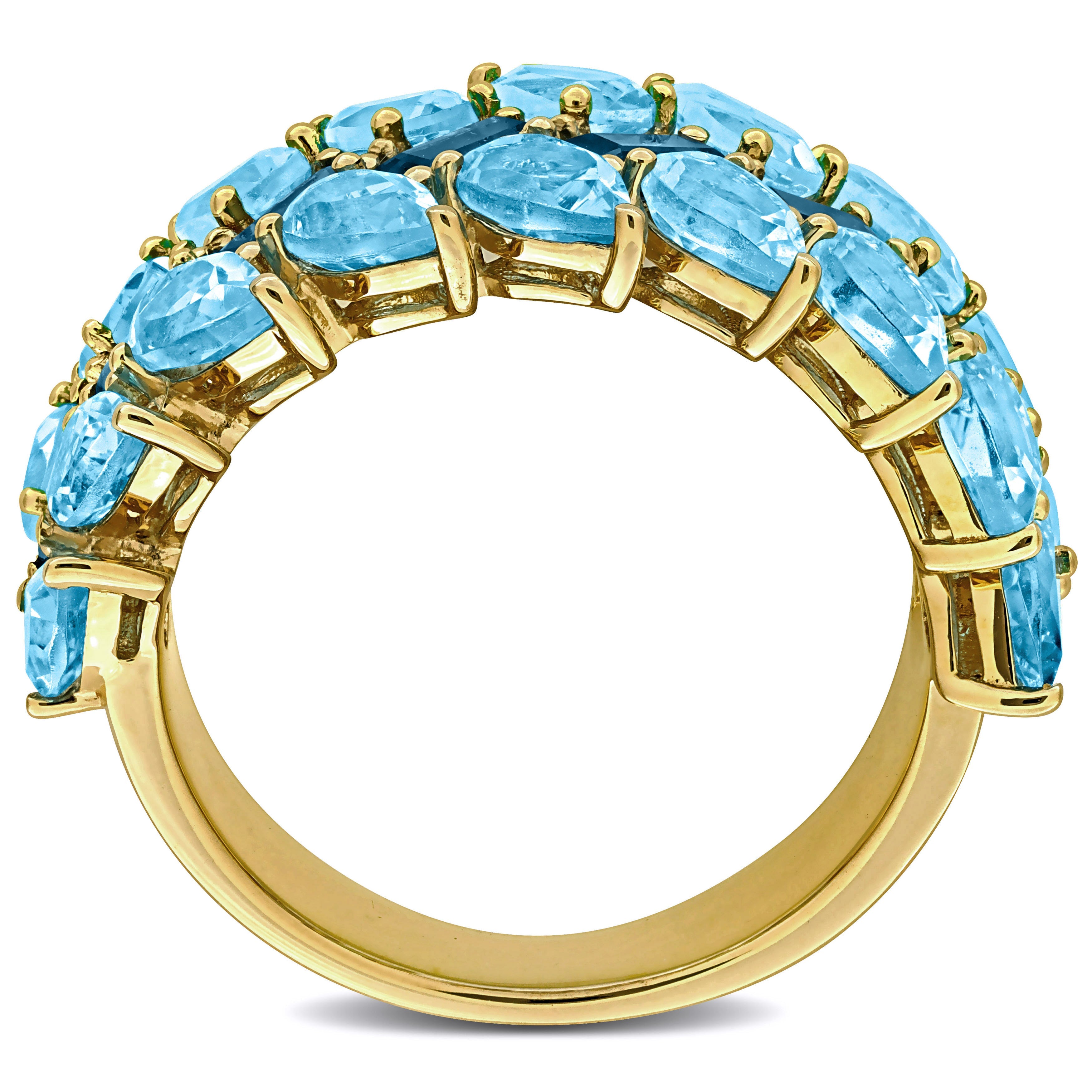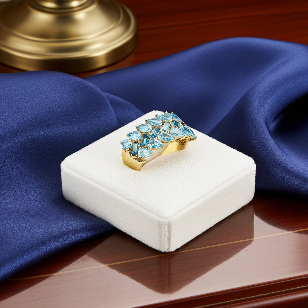 Blue Topaz 3-Row Wide Band Ring in 10k Yellow Gold